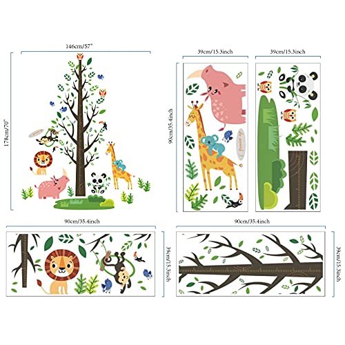 SUPERDANT 4 Fogli/Set Cartone Animato Altezza Grafico Adesivo da Parete Alberi e Animali Autoadesivo Cartone Animato Altezza Adesivo da Parete per Soggiorno Camera da Letto 39x90 cm