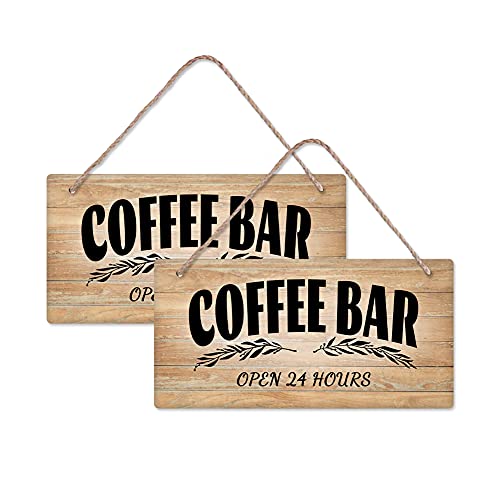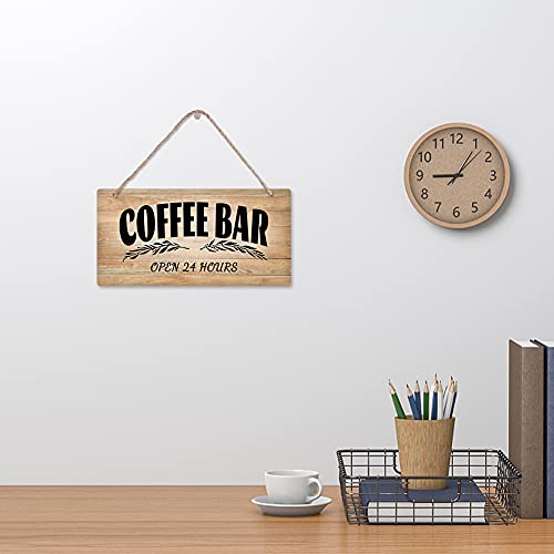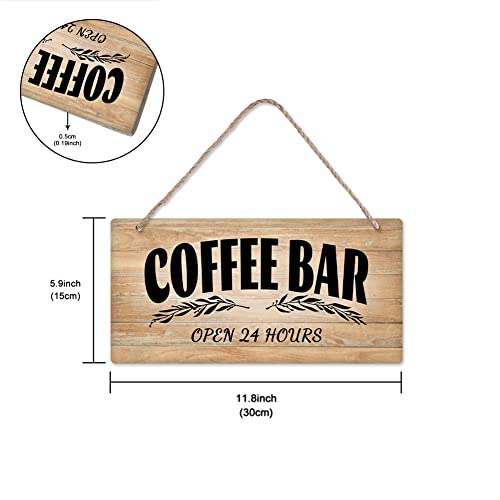 INSEGNA IN LEGNO COFFEE BAR: si tratta di un cartello da appendere in legno con motivi in legno rustico. E c'è uno slogan su di esso " Coffee bar, aperto 24 ora. " I motivi rustici in legno e rami e i bei caratteri in grassetto rendono questo cartello in legno accattivante e bello!