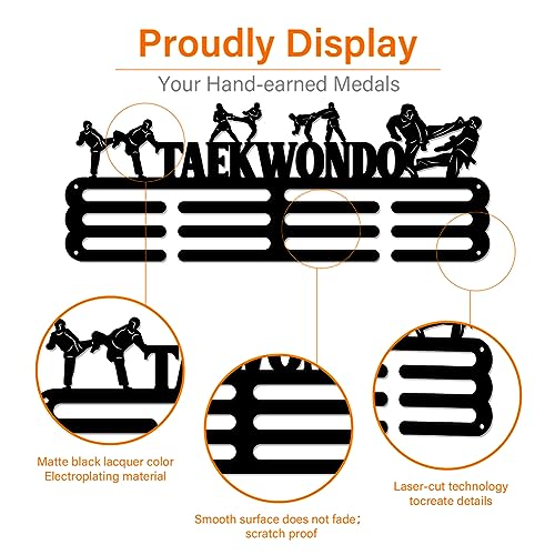 SUPERDANT Porta Medaglie Taekwondo Espositore Porta Trofei Taekwondo Appassionati di Taekwondo Sport Supporto A Parete in Metallo Senza Ganci può Sopportare 10-15 kg Nero
