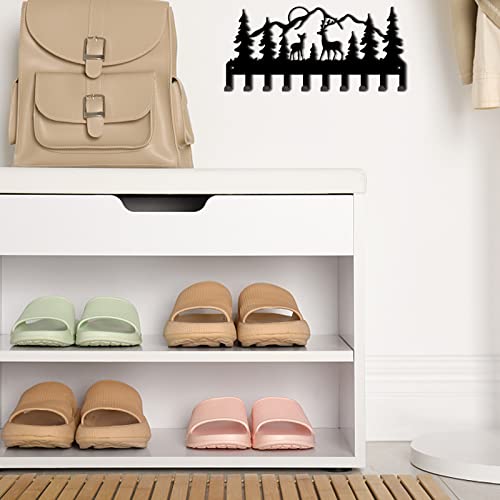 Gancio portachiavi con alce della foresta: il rack decorativo è progettato con il tema dell'alce della foresta, 2 alci sono nella giungla, dietro c'è una grande montagna, il sole sorge dalla montagna. Non solo per borse, vestiti e portachiavi, ma anche per decorazioni da parete.