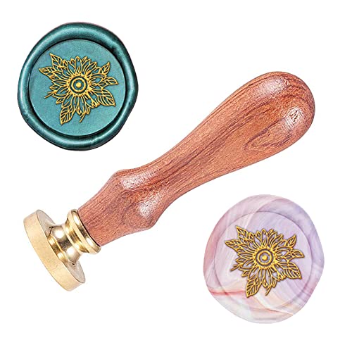 SUPERDANT Timbro Sigillo di Cera Timbro Sigillo di Cera Occhio di Girasole 0.98 Pollice Testa in Ottone Manico in Legno Timbro Vintage per Invito A Nozze Confezione Regalo Busta