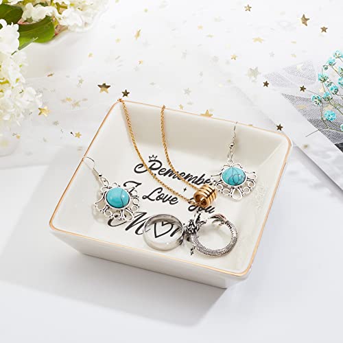 SUPERDANT Vassoio per Gioielli Messaggio per La Festa della Mamma Piatto per Gioielli Portagioie in Ceramica Portaoggetti Portagioie per Contenere Piccoli Gioielli Anelli Collane (10.5x10.5x2.7 cm)