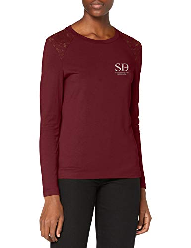 Superdry NYC Lace Shoulder Graphic Top T-Shirt, Deep Port, L Donna