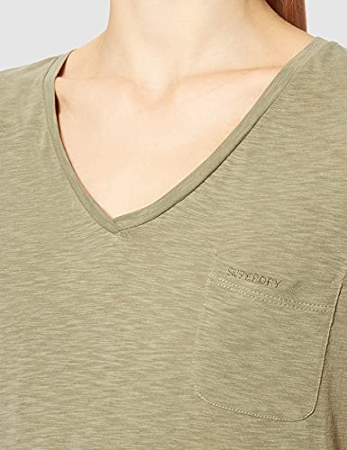 Superdry Pocket V Neck Tee T-Shirt, Light Khaki, M Donna
