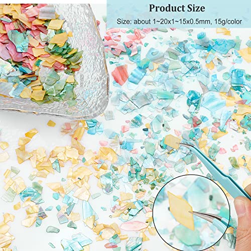 8 colori: inclusi 8 colori di decorazione irregolare per unghie a conchiglia, compreso il giallo, rosso, porpora, verde, blu, eccetera., ogni colore è 15 g, e una varietà di colori offre più scelte per le tue creazioni quotidiane.
