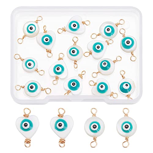 SUPERFINDINGS 20Pcs 2 Stili Conchiglia d'Acqua Dolce Naturale Collegamenti Placcato Oro 18K Conchiglia Malocchio Charms Occhi Collegamenti Connettori con Filo di Rame per La Creazione di Gioielli