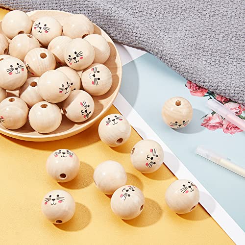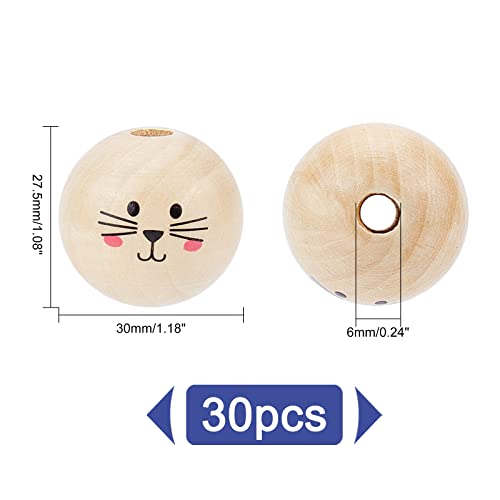 SUPERFINDINGS 30Pz 30mm Natural Smile Face Perline di Legno Perline Artigianali in Legno Distanziatore Allentato Perline di Legno Perline Distanziatrici per Testa di Bambola per Gioielli Artigianali