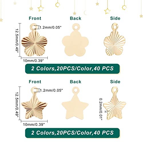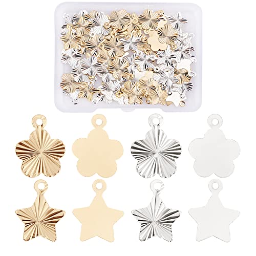 SUPERFINDINGS 80 Pz 2 Colori Ottone Stella Fiore Ciondoli Vero 24K Placcato Oro Pentagramma Ciondoli Ciondolo Fiore Ciondolo Ciondolo per Braccialetti Fai da Te Creazione, Foro:1.2mm