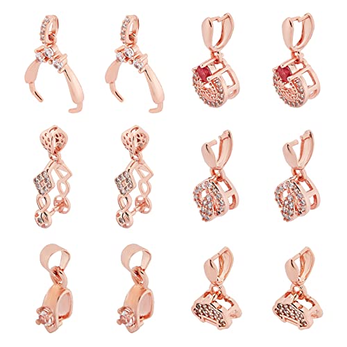 SUPERFINDINGS 12 Pz 6 Stili in Ottone Pinch Bails Ottone Micro Pave Cubic Zirconia Rompighiaccio Pinch Bails in Ottone Connettore Ciondolo per Creazione di Gioielli Fibbie Charm Connection