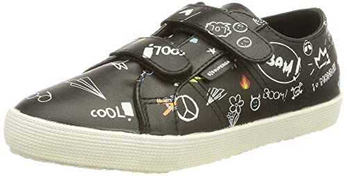 Superga 2750 Kids Straps, Scarpe da Bambini Unisex, Black-Scribbles, 34 EU