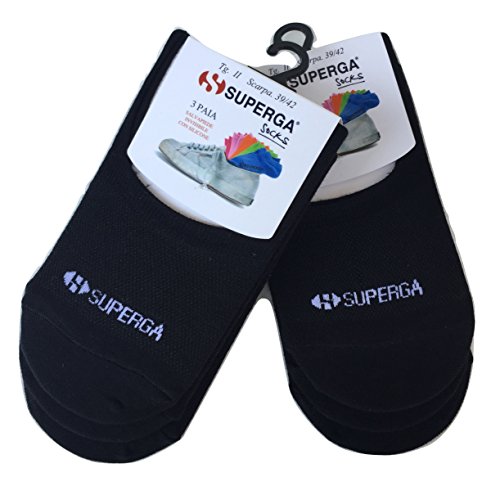 Superga" fantasmini salvapiedi invisibili con silicone sul tallone 6 paia cotone finissimo uomo donna (39-42, nero)