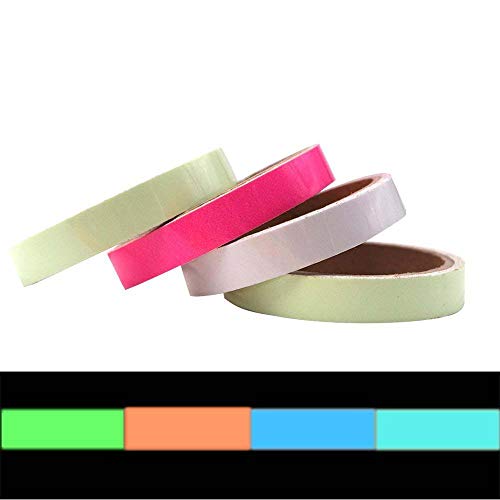 SuperHandwerk 4pz Nastro Adesivo Fluorescente al Buio Nastro Autoadesivo Luminoso Nastro Luminescente di Sicurezza Verde/Blu/Arancione/Blu-Verde