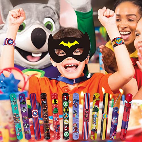 Superhero Bomboniere per feste, Regalo di compleanno, 24 Braccialetti a scatto per bambini Superhero, 12 Maschere di supereroi (biglietto d'invito), per bomboniere di supereroi per bambini compleanno