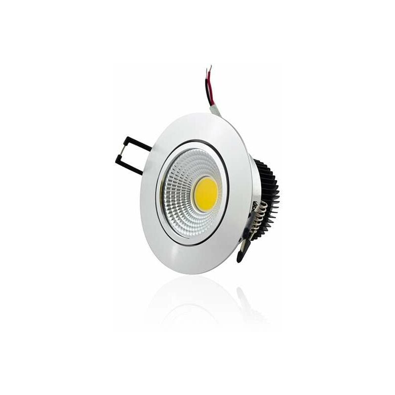 COB 5 watt LED bianco lampada LED. Illuminazione equivalente a 40 Watt. Luce bianca calda 2700K. Realizzata in alluminio massiccio, testa inclinabile 30°, leggera diffusa a 120° (angolo ampio). Tutto incluso: supporto, trasformatore dimmerabile (per collegare via wago) e lampada LED, connessione alla rete 220V. Diametro foro 67mm, diametro esterno 86mm, altezza totale 43mm 2700K 5W 40W 425 120° 50000h Un soffitto compatto e potente Questo punto ha dimensioni compatte: diametro del foro 67mm, diametro esterno 86mm, altezza totale di 43mm. La connessione viene effettuata direttamente sulla griglia elettrica 220V convenzionale - conveniente ed efficiente. Dal punto di vista estetico, questa lampada da soffitto da incasso è interamente realizzata in alluminio. Offre una bella illuminazione senza fili o elementi visibili che superano il soffitto. La luce può essere facilmente orientata al luogo da illuminare grazie alla testa inclinabile a 30°. La profondità del posto è solo 43mm o
