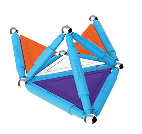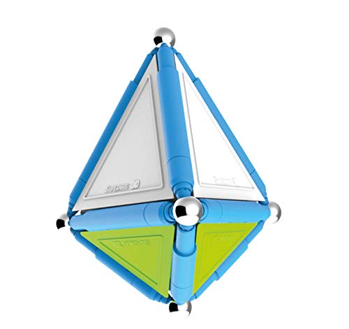 Componenti della scatola: 12 barrette magnetiche monocolore di due diverse dimensioni, 14 anelli, 10 palline e 12 placchette.