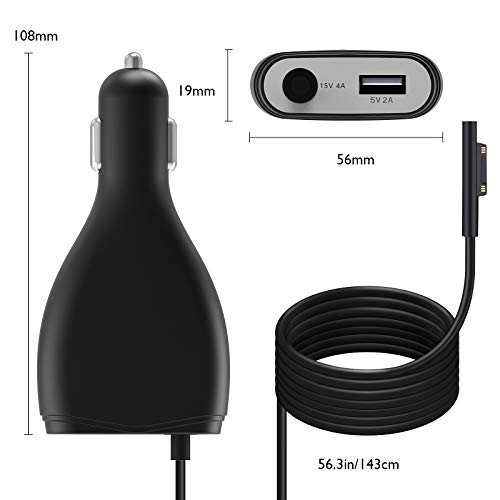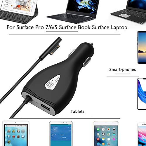SUPERNIGHT Car Power Adapter Surface 60W (15V 4A) Surface Pro Charger Car Charging Cable per Surface Book & Surface Pro 3 4 5 6 7 X, Surface Laptop 2/1, Surface Go con porta di ricarica USB 5V 2A, 70W