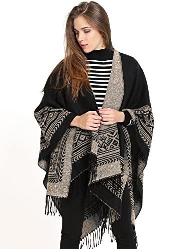 Superora Poncho da Donna Cape Sciarpa Scialle Mantello Invernale Geometria Stampa Eleganza con Nappa