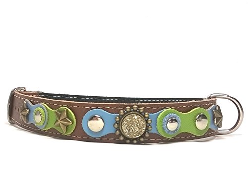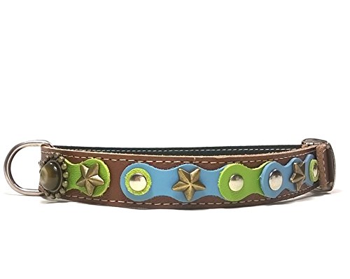 Superpipapo Collare per Cane di Pelle - Taglia Piccola e Chihuahua, Media e Grande - Design Originale e Elegante Fatto a Mano - Fantasia Blu e Verde con Stelle