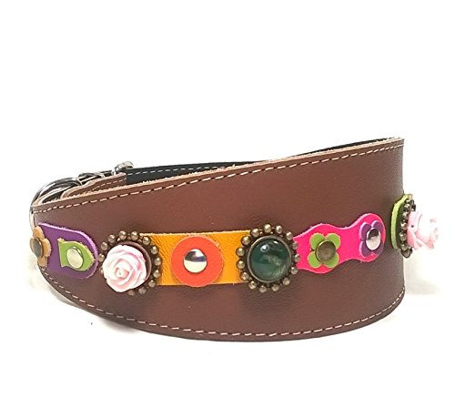 Superpipapo Collare per Levriero Whippet Galgo e Greyhound di Pelle - Design Originale e Elegante Fatto a Mano - Fiori Vintage Fucsia Lilla Viola Rosa