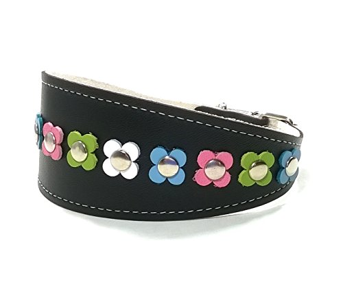Superpipapo Collare per Piccolo Levriero Whippet Galgo e Greyhound di Pelle - Design Originale e Elegante Fatto a Mano - Fiori Pastello Blu Bianca Rosa Verde