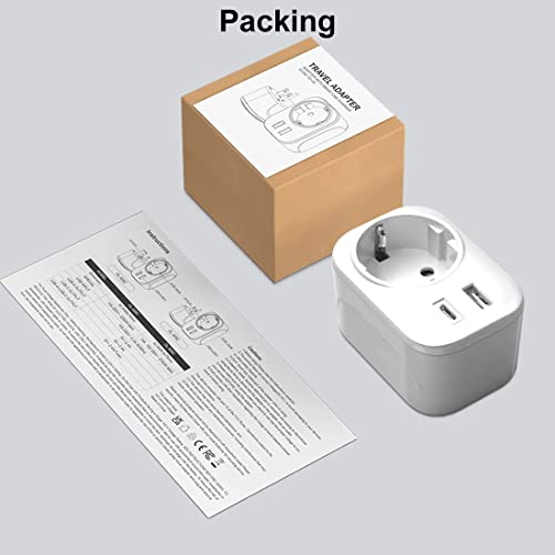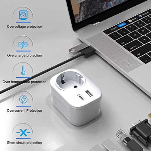 【Ricarica rapida intelligente】➤ Adattatore universale 3 in 1 dall'Europa (tipo C/E/F) al Regno Unito (tipo G) con 1 porta USB e 1 porta USB-C. L'adattatore da viaggio carica 3 dispositivi contemporaneamente ad alta velocità, compat
