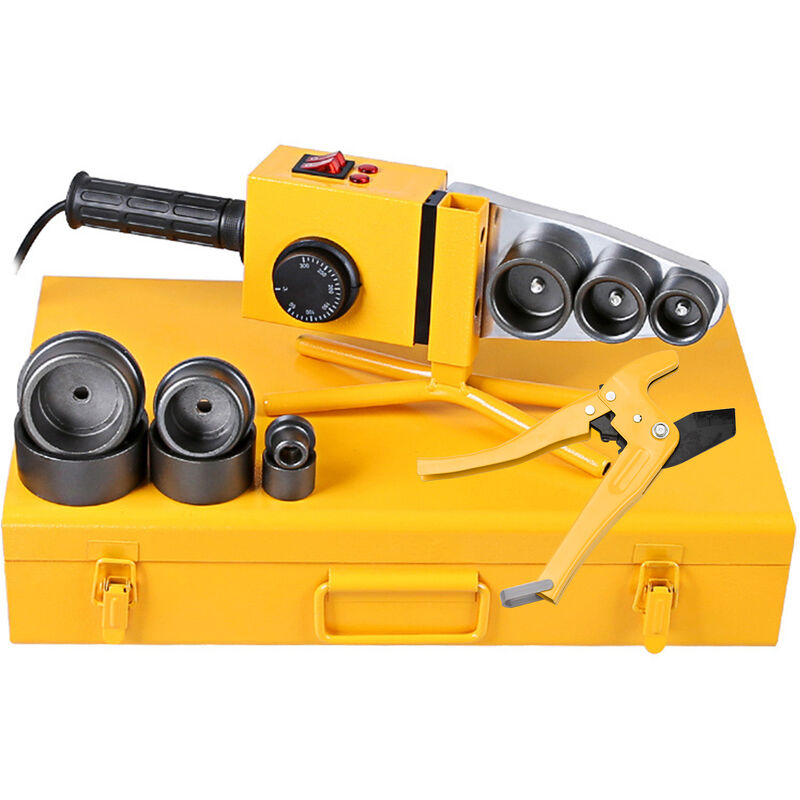 Questo kit di saldatrice portatile per tubi è adatto per tubi termoplastici. Con 6 gruppi di filiere (20/ 25/ 32/ 40/ 50/ 63 mm), la macchina può soddisfare diversi requisiti nella manutenzione dei tubi. Il design a temperatura costante e doppia dissipazione del calore garantisce prestazioni stabili. Caratteristiche: Realizzato in materiale di alluminio con durata e resistenza all'usura, può garantire un uso a lungo termine. Sono disponibili 6 gruppi di filiere, rispettivamente di diametro 20, 25, 32, 40, 50 e 63 mm, installabili sulla macchina per soddisfare le vostre esigenze quotidiane. La saldatrice per tubi può essere utilizzata per tubi termoplastici come PPR, PE, PP, HDPE, PVC e PPC ed è perfetta per la manutenzione dei tubi a casa, in officina o in cantiere. Temperatura di controllo a doppio interruttore, facile da usare. Dotato di forbici per tubi, è più comodo da usare. La temperatura regolabile (0-320 ℃ ± 5 ℃) e il design a doppia dissipazione del calore consentono di