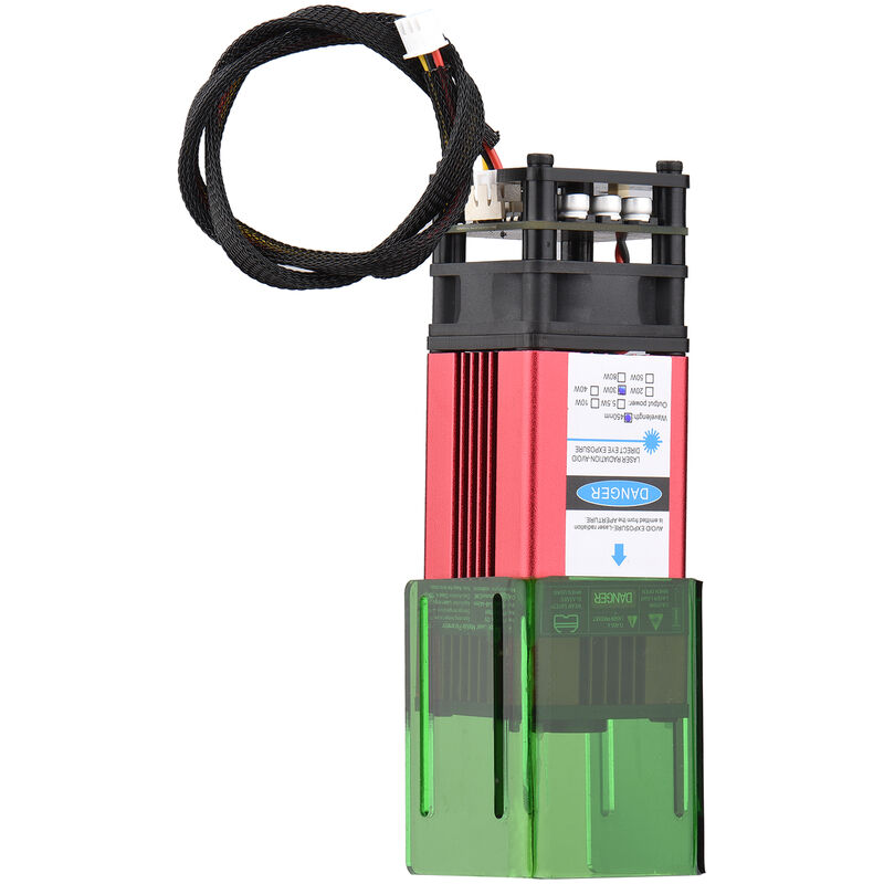 Il modulo laser professionale, facile da installare, con una minore perdita, fornisce una lunghezza d'onda di 450 nm, per un'incisione e un taglio efficienti e precisi di plastica, legno, pelle, carta e così via, adatto per un'ampia gamma di macchine per incidere. Questa è la versione aggiornata con copertura protettiva, più sicura da usare rispetto alla vecchia. Caratteristiche: Versione aggiornata: dotata di copertura protettiva regolabile per proteggere gli occhi, non è necessario indossare occhiali laser extra durante il lavoro, più sicura da usare rispetto alla normale testa laser. Con lunghezza focale regolabile (5,5 W/ 10 W/ 20 W, 20-70 mm) o lunghezza focale fissa (30 W, 12,6 mm/ 40 W, 15 mm/ 40 W, 40 mm). Realizzato con involucro in lega di alluminio di alta qualità con grande durata. Può incidere carta, legno, tessuto, plastica, pelle, alluminio anodizzato, ecc. Diversi moduli laser per incidere/tagliare diversi tipi di materiale e diversi spessori. Presenta un'elevata