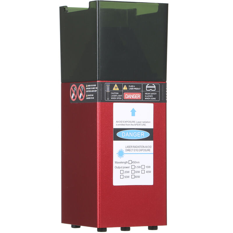 Modulo laser professionale, facile da installare, con perdite inferiori, fornisce una lunghezza d'onda di 450 nm, per un'incisione e un taglio efficienti e precisi di plastica, legno, pelle, carta e così via, adatto a un'ampia gamma di macchine per incisione. Caratteristiche: Ha una lunghezza focale fissa (migliore lunghezza focale: mantenere il bordo inferiore in plastica della testa del laser a 8 mm di distanza dall'oggetto da incidere). Realizzato con involucro in lega di alluminio di alta qualità con grande durata. Può incidere carta, legno, plastica, pelle, spugna, acciaio inossidabile, ecc.. Diversi moduli laser per incidere/tagliare diversi tipi di materiale e diversi spessori. Presenta un'elevata velocità di incisione, bassa perdita di potenza, buona stabilità e prestazioni superiori, con una buona dissipazione del calore per prolungarne la durata. Compatto e leggero, facile da montare, ha una linea lunga oltre 30 cm. Viene fornito con una piastra metallica e 3 viti, comodo e