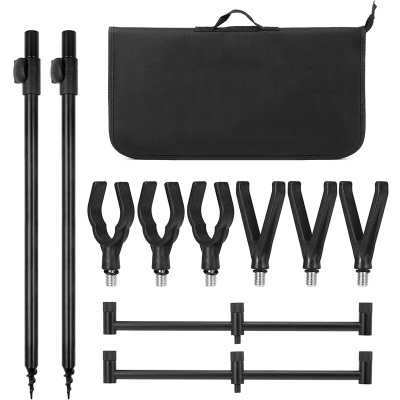 Caratteristiche: Questo set comprende 2 barretta da pesca, 6 riposo da pesca, 2 porte da pesca e 1 sacchetto di pesca. Per liberare le mani, non c'è bisogno di mantenere la tua canna da pesca tutto il tempo. Thread M3 / 8 si adatta per la maggior parte del morso allarme e della testa di riposo della canna da pesca. Vieni con un sacchetto di stoccaggio idrorepellente. Leggero e portatile, facile da trasportare. Bel tackle per gli amanti della pesca. Specifica: Modello: Set 1 / Set 2 / Set 3 (opzionale) Peso del pacchetto: ca. 942 g / 33.2 oz Dimensione del pacchetto: 50 * 26 * 6 cm / 19.7 * 10.2 * 2.4 in Fishing Buzz Bar: Lunghezza: 36 cm /14.1 in Materiale: lega di alluminio Peso unitario: ca. 99 g / 3.4 oz Supporto per pole da pesca: Lunghezza: 45 - 78 cm / 17.7 - 30.7 in Materiale: lega di alluminio Peso: ca. 112 g / 4.0 oz Riposa di canna da pesca: Materiale: nylon. Apertura massima: 32 mm / 1.2 in Borsa da pesca: Materiale: tessuto Oxford da 1680D Dimensione: 47 * 25 cm / 18,5 *