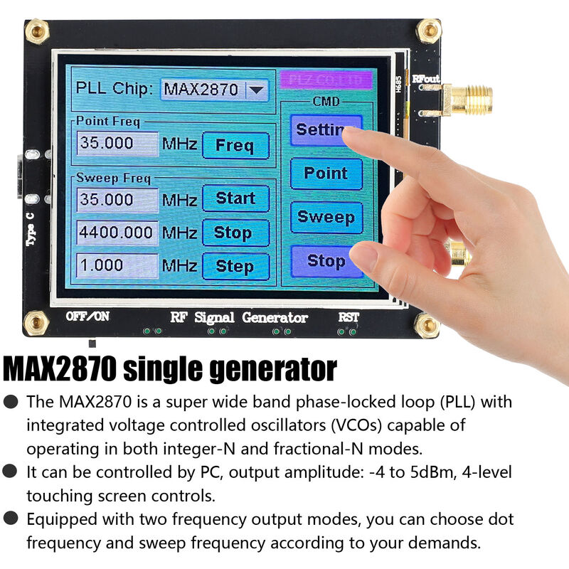 Questo generatore MAX2870 è un anello ad aggancio di fase (PLL) a banda larga con oscillatori controllati in tensione (VCO) integrati in grado di funzionare sia in modalità N intero che N frazionario. Copertura multipla integrata di VCO (da 3000 MHz a 6000 MHz) e divisori di uscita (da 1 a 128) utilizzati per implementare l'uscita di clock su un'ampia gamma di frequenze. Caratteristiche: Il MAX2870 è un anello ad aggancio di fase (PLL) a banda larga con oscillatori controllati in tensione (VCO) integrati in grado di funzionare sia in modalità N intero che N frazionario. Quando accoppiato con un oscillatore di riferimento esterno e un filtro ad anello, il MAX2870 costituisce un sintetizzatore di frequenza ad alte prestazioni in grado di sintetizzare frequenze da 23,5 MHz a 6000 MHz mantenendo un rumore di fase superiore e prestazioni spurie. Copertura multipla integrata di VCO (da 3000 MHz a 6000 MHz) e divisori di uscita (da 1 a 128) utilizzati per implementare l'uscita di clock su