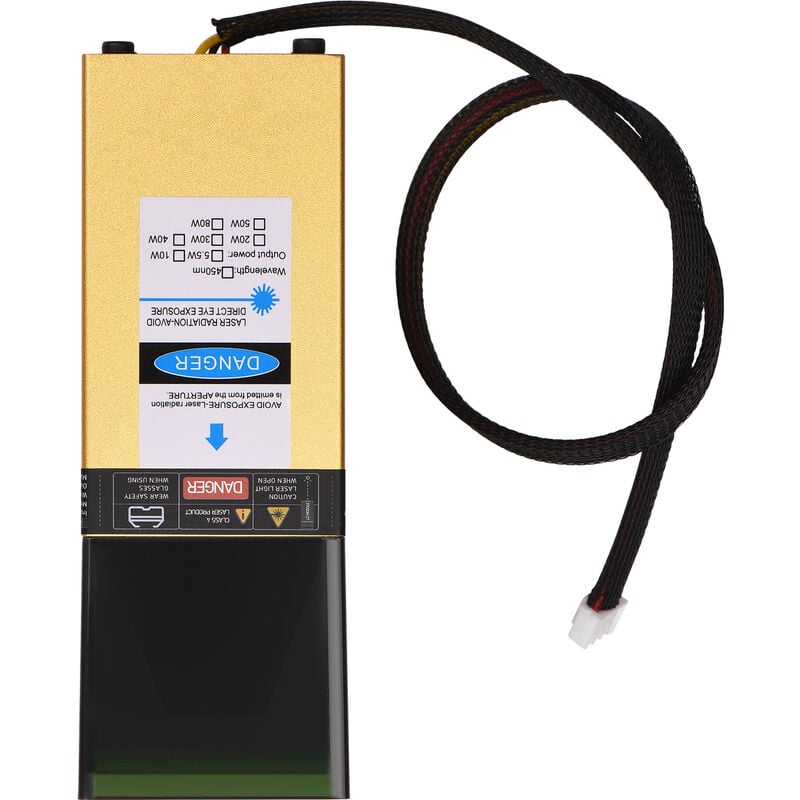 Modulo laser professionale, facile da installare, con perdite inferiori, fornisce una lunghezza d'onda di 450 nm, per incisioni e tagli efficienti e precisi di plastica, legno, pelle, carta e così via, adatto per un'ampia gamma di macchine per incidere. Caratteristiche: Ha una lunghezza focale fissa (migliore lunghezza focale: mantenere il bordo inferiore in plastica della testina laser a 8 mm di distanza dall'oggetto da incisione). Realizzato con involucro in lega di alluminio di alta qualità con grande durata. Può incidere carta, legno, plastica, pelle, spugna, acciaio inox, ecc. Diversi moduli laser per incidere/tagliare diversi tipi di materiale e diversi spessori. Presenta un'elevata velocità di incisione, una bassa perdita di potenza, una buona stabilità e prestazioni superiori, con una dissipazione del calore fine per prolungarne la durata. Compatto e leggero, facile da montare, ha una linea lunga oltre 30 cm. Viene fornito con ricchi accessori, comodi e semplici da installare