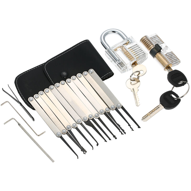 Questo set è molto adatto per i principianti che vogliono imporvi le abilità di lock picking e che perdono sempre le sue chiavi. Certo, è un regalo ideale per i bambini che sono interessati alla struttura e alla scienza. Sono inclusi due diversi tipi di lucchetti, che ti danno la possibilità di esercitarti su diversi tipi di serrature. Caratteristiche: Set di 15 pezzi con un blocco di allenamento incluso, il set all-in-one contiene tutti gli strumenti necessari. Il lucchetto con struttura trasparente ti aiuterà a imparare meglio il meccanismo dietro le serrature. I plettri sono fatti di acciaio inossidabile e la serratura è in acrilico, resistente e robusta per un uso prolungato. Sono inclusi due diversi tipi di lucchetti, che ti danno la possibilità di esercitarti su diversi tipi di serrature. La borsa per il trasporto è inclusa per una facile conservazione. Ideale per principianti e professionisti. specifiche tecniche: Materiale: acciaio inossidabile (plettri) e acrilico (lucchetto)