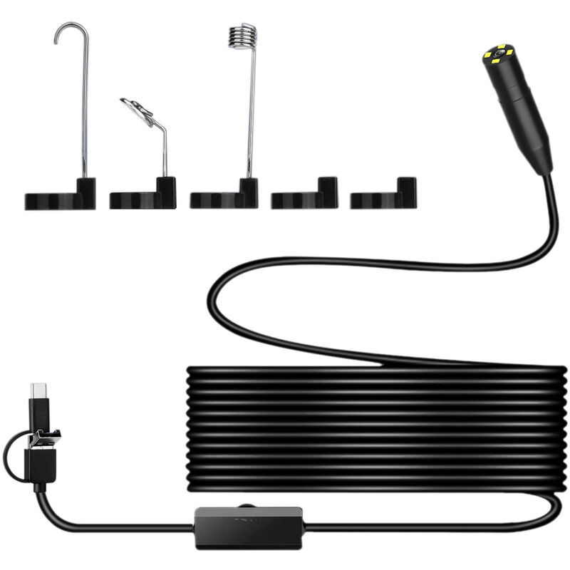 Questo endoscopio e un dispositivo molto utile e pratico nella tua vita quotidiana per aiutarti per l'ispezione dell'automobile, l'ispezione della linea p-ipeline, l'ispezione dell'aria condizionata, la ricerca di oggetti, ecc. Cosa stai aspettando? Vieni a comprare. Caratteristiche: Realizzato in materiale di alta qualita con una forte durata, sopportabile e di lunga durata. Obiettivo della fotocamera con diametro di 11 mm/14 mm (opzionale) con porta di ricarica 3 in 1 (sostituzione per porta di tipo C/Adroid/USB), alta risoluzione 2560* 1944, pixel 5M e LED dimmerabili ad alta luminosita da 4 pezzi per facilitare la visualizzazione. Angolo di visione di 70 gradi, design con messa a fuoco automatica, formato foto MJPEG e formato video MP4, adatto per la maggior parte dell'uso quotidiano, facile da usare. L'obiettivo della fotocamera impermeabile IP68 consente di utilizzare questa fotocamera di ispezione sott'acqua o in un ambiente umido. Facile da visualizzare, offre immagini nitide