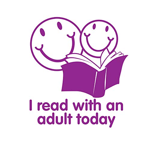 Questo pre-inchiostrato Stamper mostra un immagine di adulti e bambini lettura viola insieme con il messaggio: "Ho letto con un adulto oggi '
