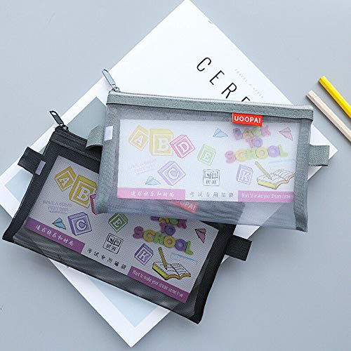 SUPERTOOL - Astuccio a rete, trasparente, con cerniera, di alta qualità, grande capacità, colore: nero, per cancelleria e articoli da trucco (1 pezzo)