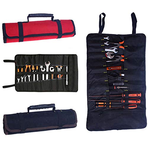 SUPERTOOL - Borsa porta attrezzi portatile, 22 tasche, in tela Oxford 600D, arrotolabile, per attrezzi e riparazioni, nero