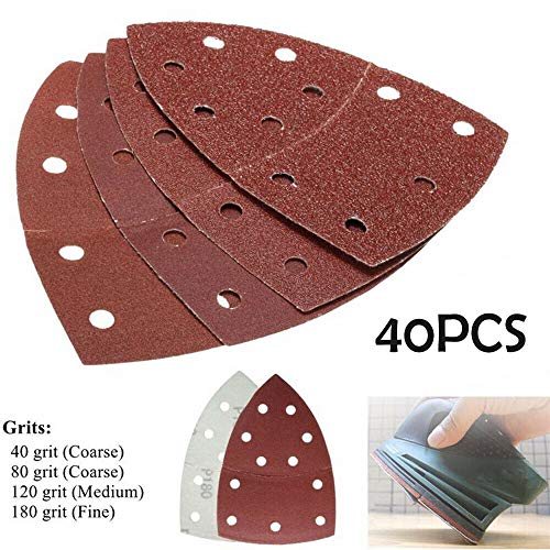 SUPERTOOL - 40 fogli abrasivi per levigatura a palmo, triangolo con gancio e anello di carta vetrata (grana mista)