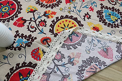 Superwinger - Tovaglia vintage con pizzo e girasoli, in lino ricamato, rettangolare, lavabile, per sala da pranzo e picnic, dimensioni assortite, Cotone, Multi, 90x90 cm (36x36 inch)