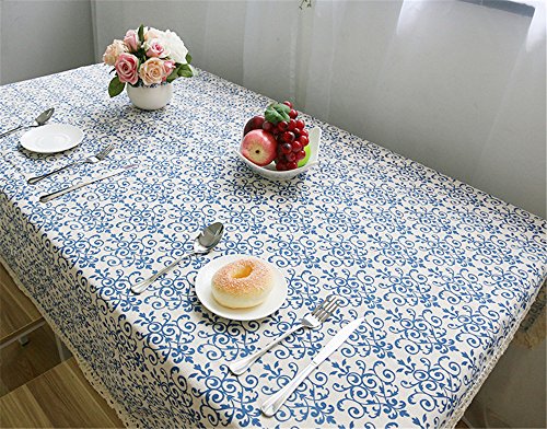 Superwinger - Tovaglia vintage con pizzo e girasoli, in lino ricamato, rettangolare, lavabile, per sala da pranzo e picnic, dimensioni assortite, Cotone, Blue Flowers, 140x220 cm (55x87 inch)
