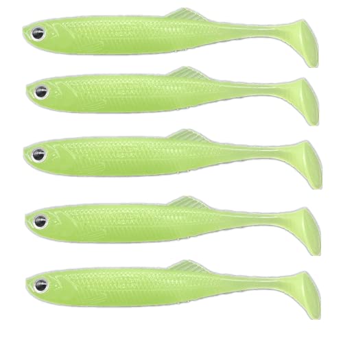 SUPGLAZ Soft Plastic Lures Paddle Tail Swimbait for Bass Trout Walleye Crappie 3.9 (Luminous)