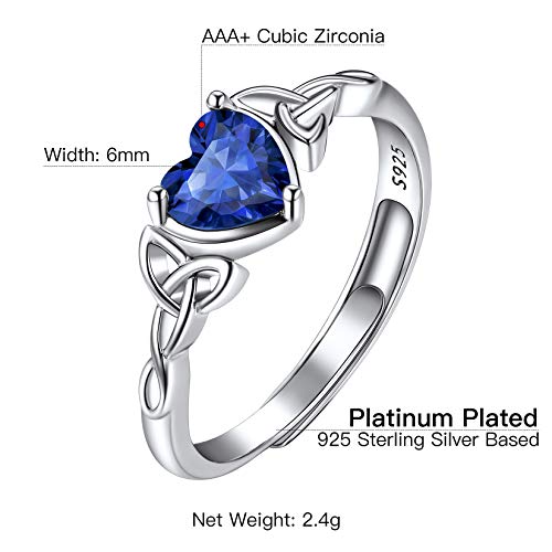 Suplight Anello Celtico Argento Regolabili Donna Pietra Cuore Anello Argento 925 Regolabile Zaffiro Anello Regolabile con Pietra Settembre con Confezione Regalo