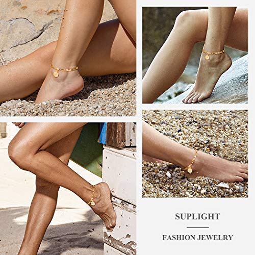 Suplight Cavigliera Donna Resistente Acqua Cavigliera con Lettera Y Oro Cavigliera Donna Semplice 22+5 cm Catena Regolabile