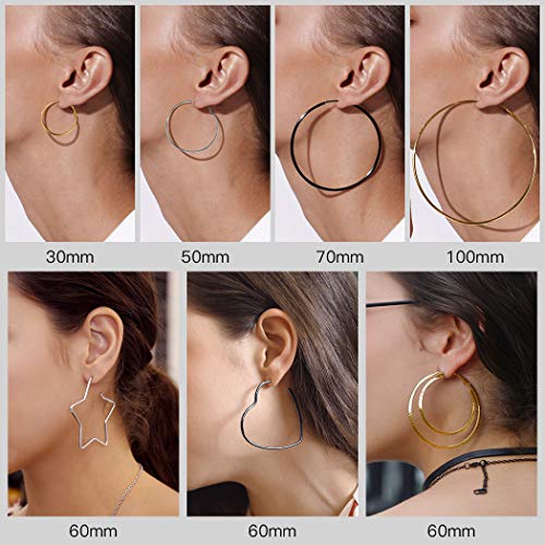 Suplight Orecchini a Cerchio Grandi Anallergici Orecchini Cerchio Acciaio Stella Argento 60mm Orecchini Tondi Grandi con Confezione Regalo