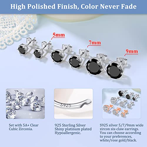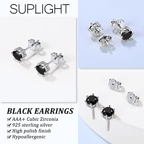 Suplight Orecchini Neri Argento 925 5mm Orecchini Neri Donna Orecchini a Lobo Uomo Argento