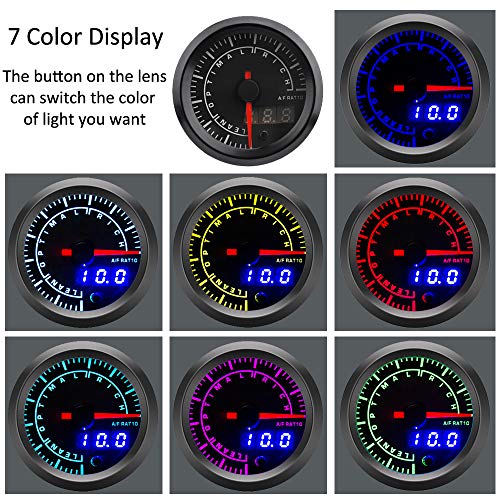 Supmico 52mm Motore Auto Kit Calibro indicatore del Rapporto Aria Carburante Livello Puntatore Digitale Doppio Indicatore Luminoso LED 7 Colori