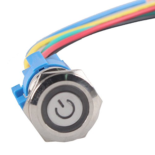 Supmico Auto 12V 16mm simbolo luce verde LED lampada leggera energia cerchio metallo angelo occhio premi il bottone interruttore a levetta presa di corrente