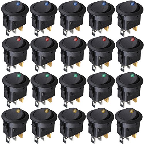 Supmico 20 X auto 12V 16A pulsanti interrutore a bilanciere rotonda luce blu rosso verde giallo LED lampada leggera acceso spento levetta