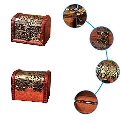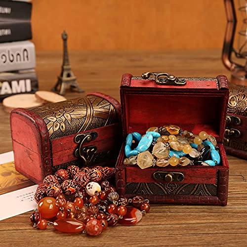 SUpoetry 4 Pezzi Scrigno del Tesoro, Portagioie Vintage in Legno, Mini Scatola Portaoggetti in Legno con Motivo Floreale Decorativo, Può Essere Utilizzata per Conservare Gioielli