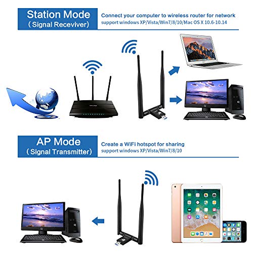 ⚡ Distanza di trasmissione più lontana, segnale più stabile. Questo adattatore wifi è dotato di 2 antenne WiFi 5dBi ad alto guadagno, distanza di trasmissione fino a 110 metri. Queste antenne 5dBi offrono una forte capacità e stabilità penetrante. Rimarrà una buona connessione anche quando i segnali sono molto deboli.
