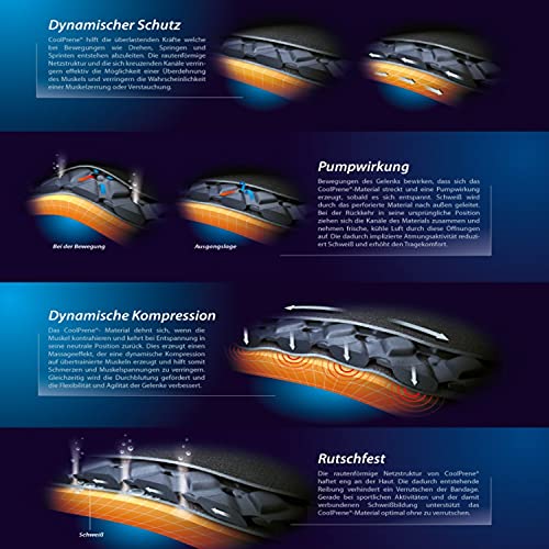 ALTO COMFORT DI INDOSSAMENTO: l'ortesi per pollice può essere facilmente indossata e tolta con una mano. La chiusura in velcro consente di fissare la benda del pollice al polso individualmente. La libertà di movimento di tutte le altre dita è garantita. Il materiale Coolprene traspirante riduce al minimo la traspirazione e garantisce un elevato comfort. La benda può essere utilizzata sia per il pollice che per il pollice destro.